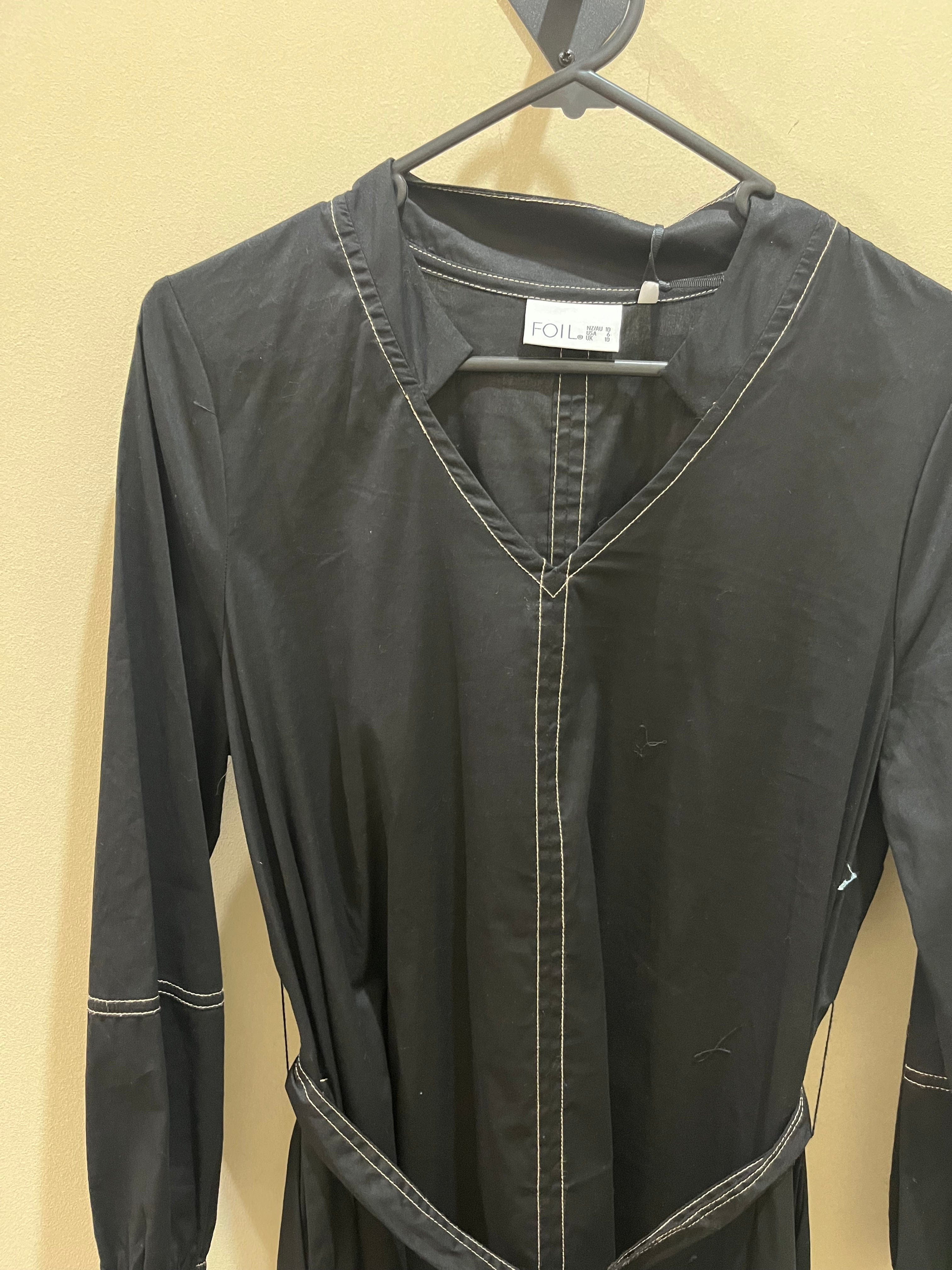 Elevate your style game with the Foil Best Tactics Dress. Featuring convenient pockets, a chic V cut out neckline, and soft full sleeves, this dress is both functional and fashionable. Its A-line skirt and stretch fabric provide a comfortable fit, while the soft tie belt accentuates your figure. Make a statement with every wear!