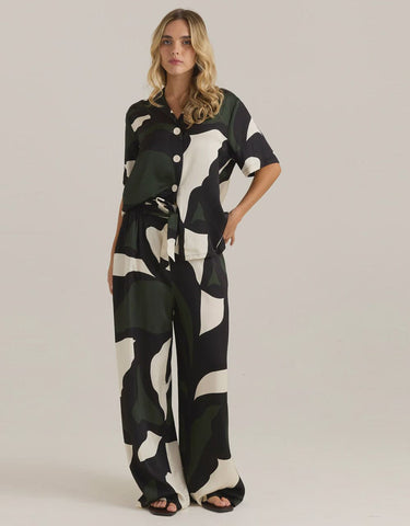 -Abstract print in green, black and ivory