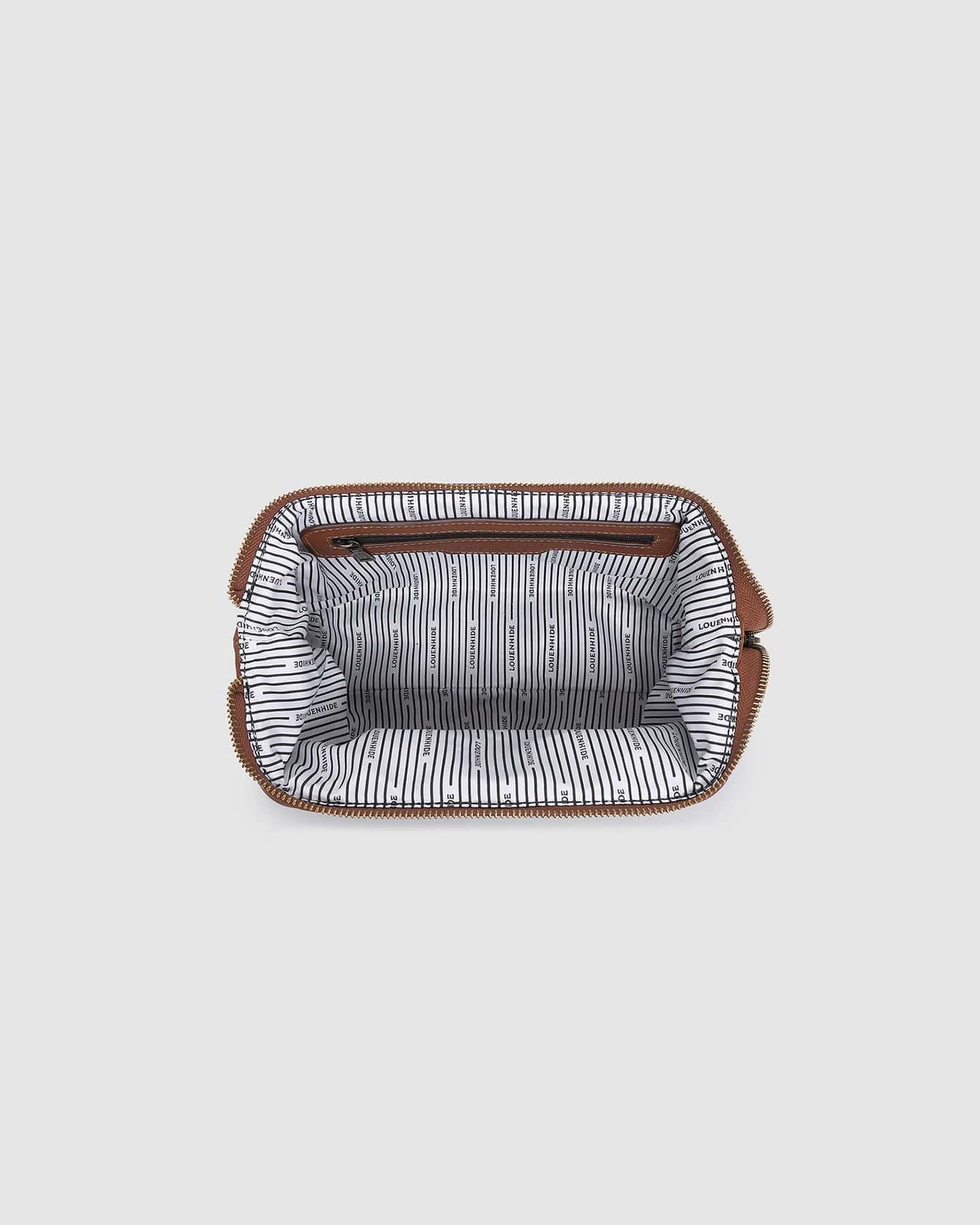 The Albie Saddle Black Cosmetic Case is a refined wash bag designed for effortless organisation and everyday practicality. Crafted from smooth vegan leather and finished with antique gold hardware, this cosmetic case offers a sleek, modern look suited to any routine. Inside, a practical zip pocket keeps smaller items neatly contained, while a secure zip closure ensures everything stays in place. With its considered design and durable construction, Albie Saddle Black stands confidently among the best toiletry bags for men.