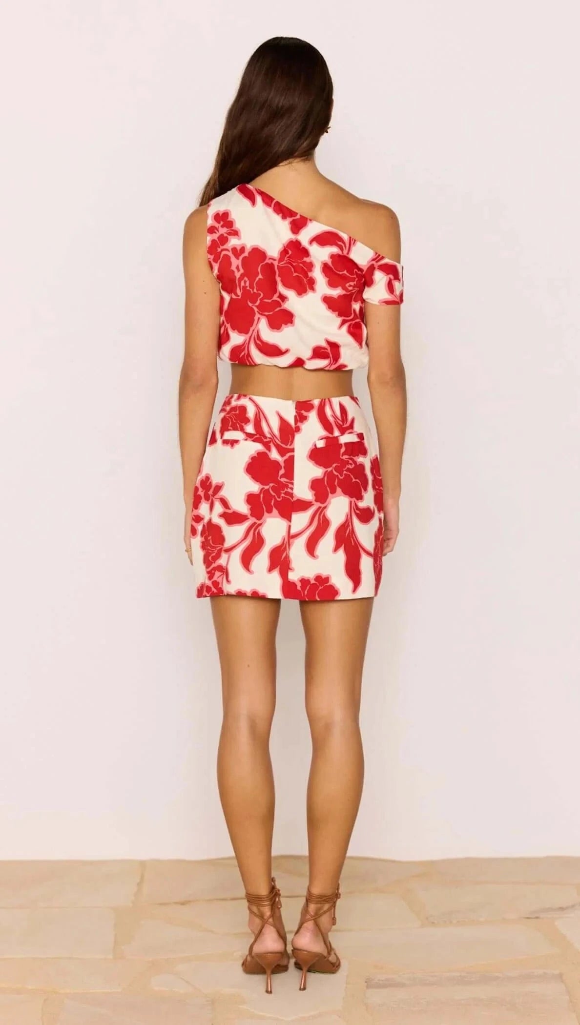 The Rosela Red & White Floral Linen Blend Mini Skirt is a standout piece for summer styling. Designed in a striking red floral print, this mini skirt features a high-waist silhouette with a flattering fit. Crafted from a lightweight viscose-linen blend and fully lined in cotton, it’s the perfect blend of comfort and style. Pair it with the matching Rosela Crop Top for an effortless co-ord look.