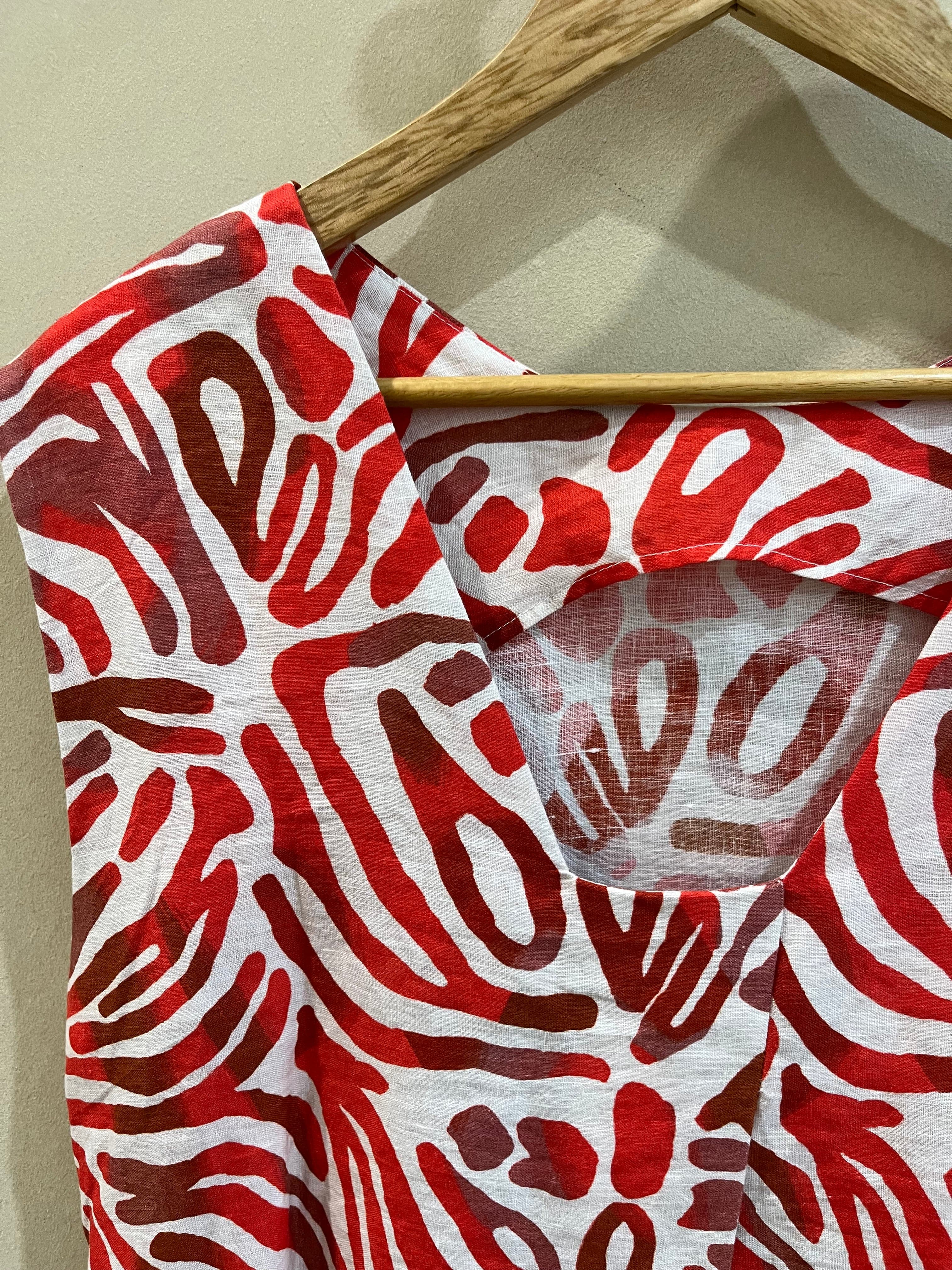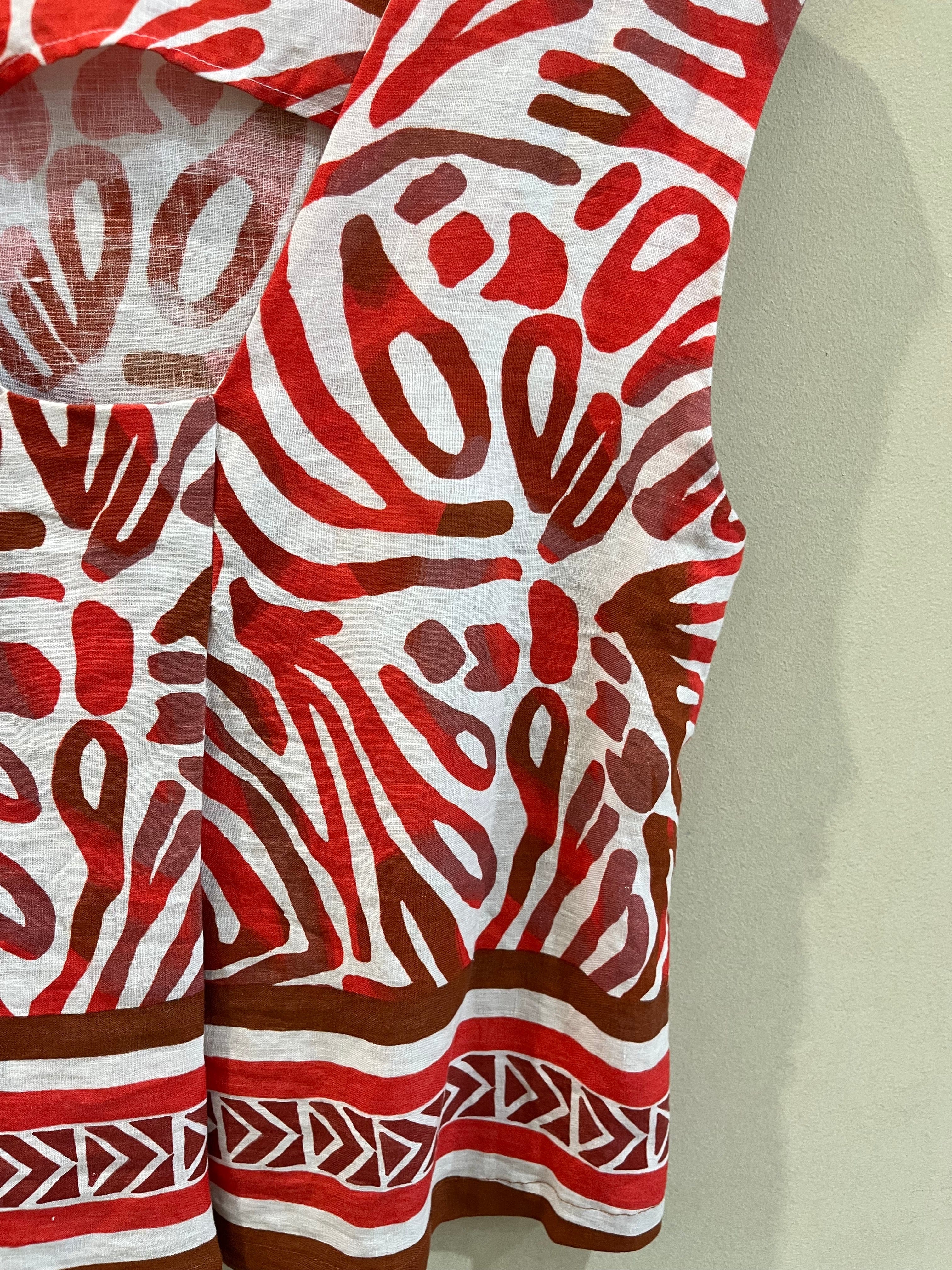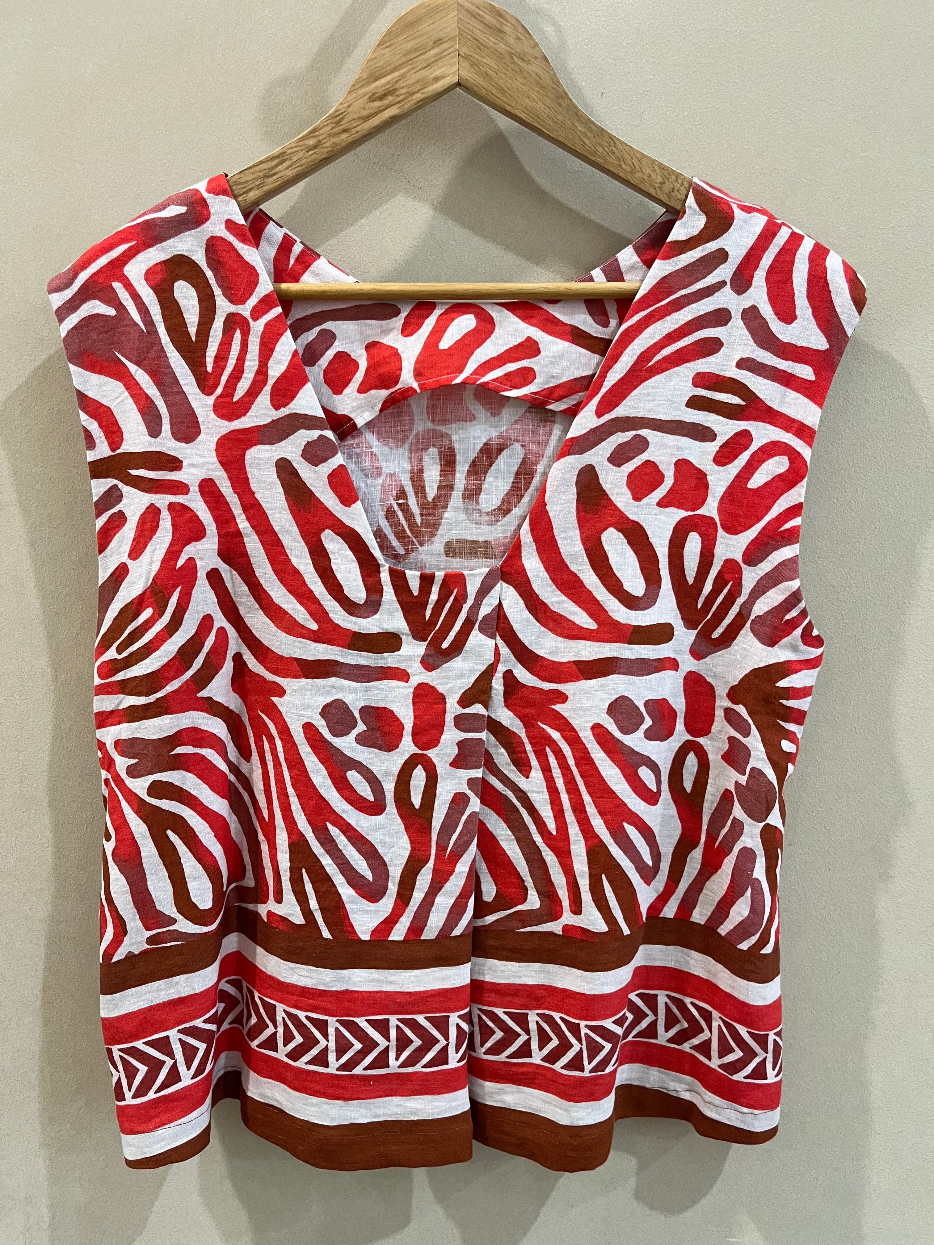 Crafted from 100% linen, this sleeveless top features a relaxed fit with a unique design twist—a round neckline in the front and a square neckline at the back.