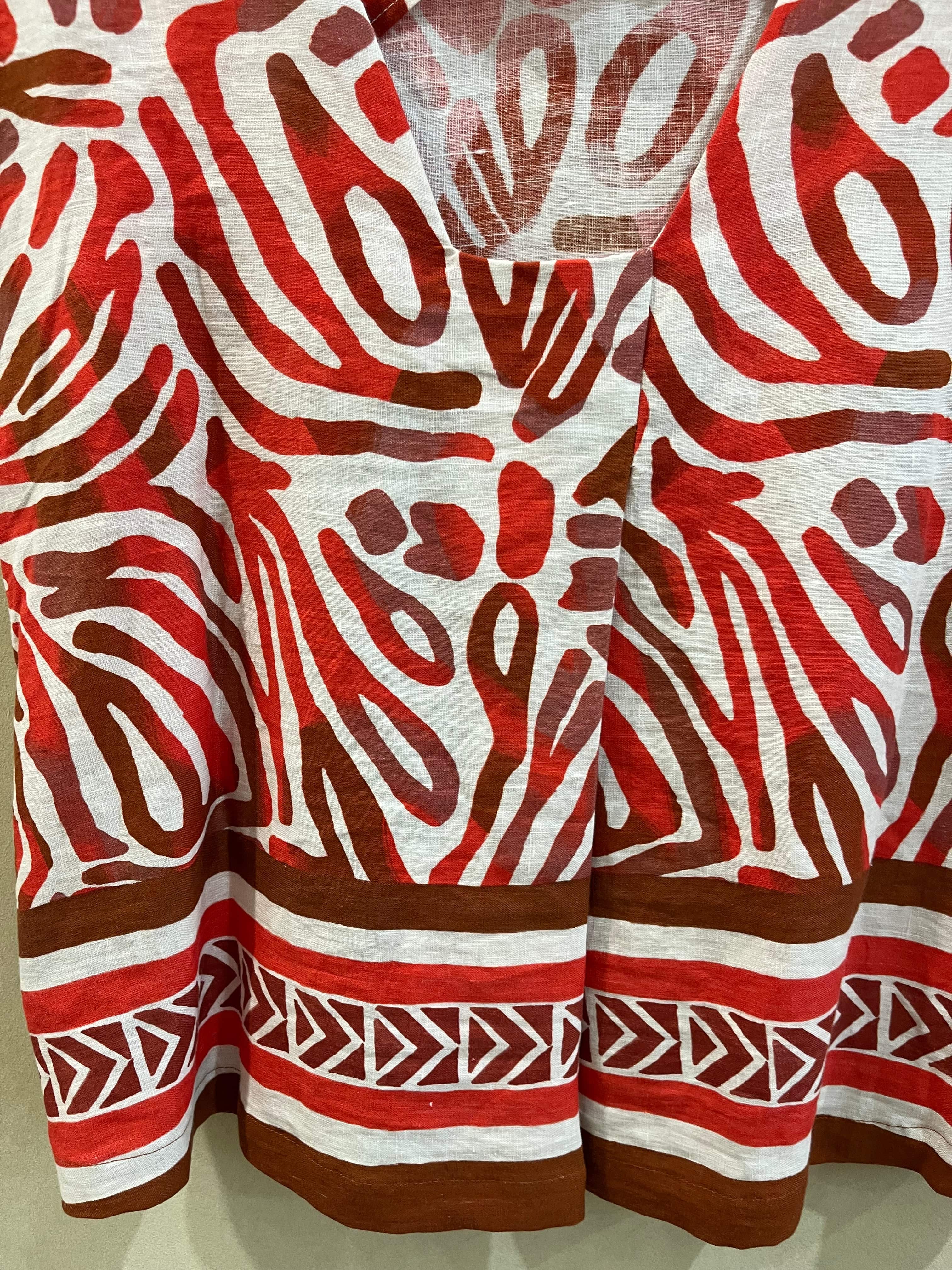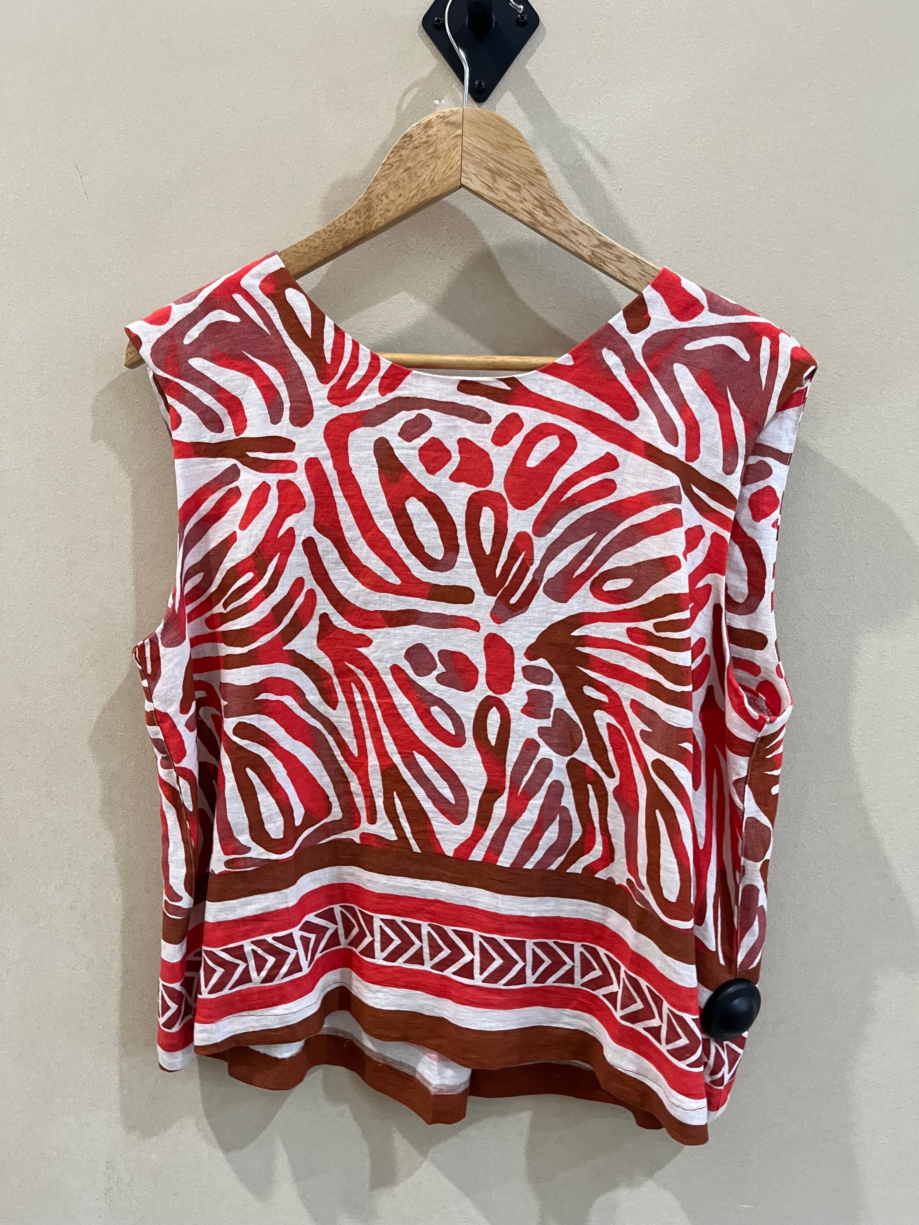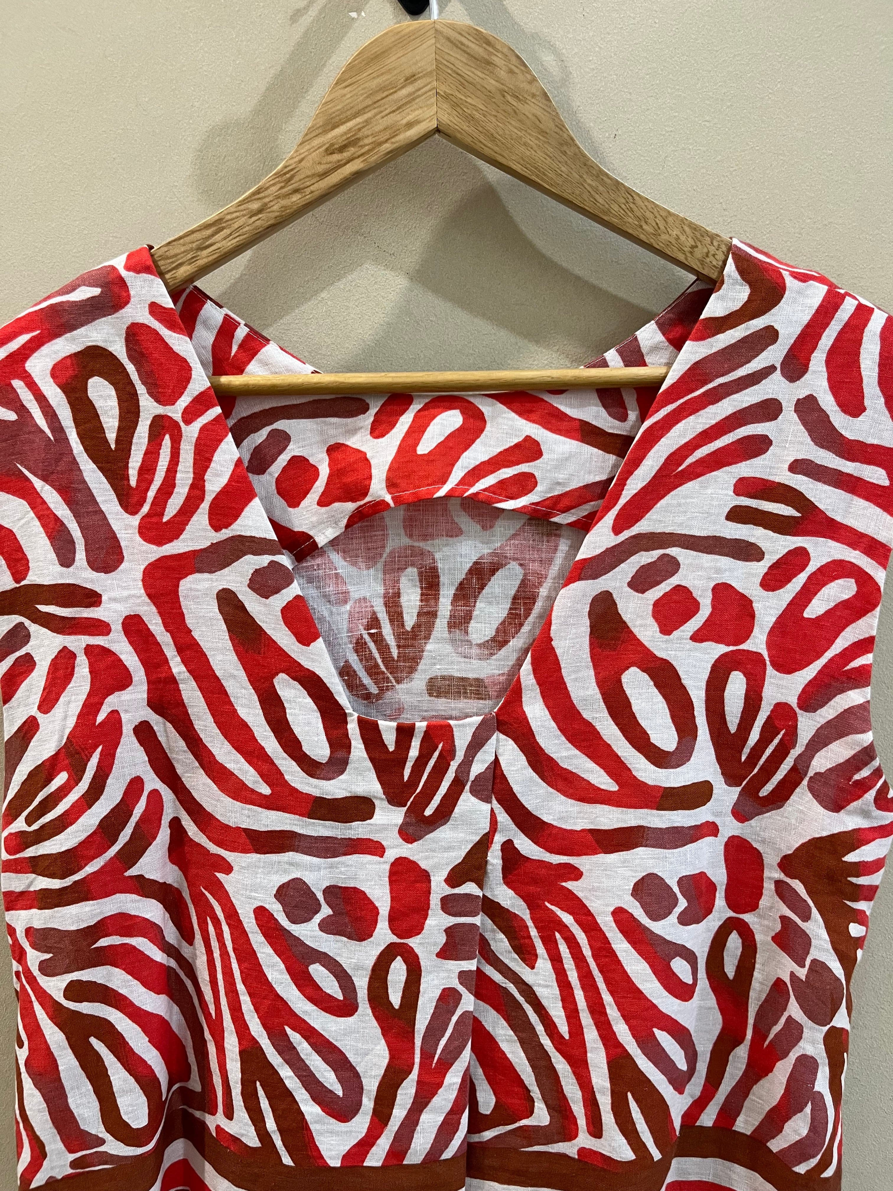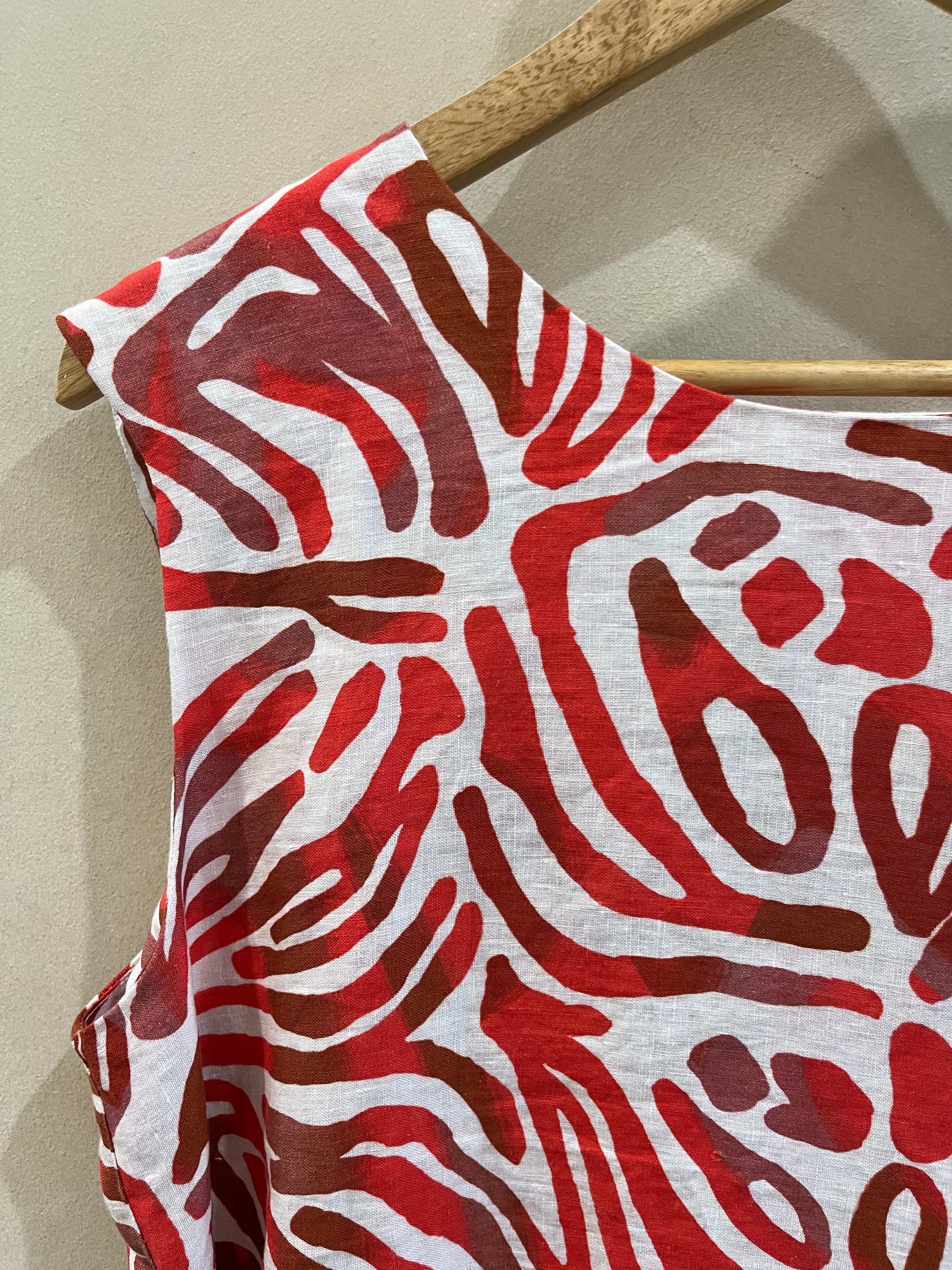 Crafted from 100% linen, this sleeveless top features a relaxed fit with a unique design twist—a round neckline in the front and a square neckline at the back.