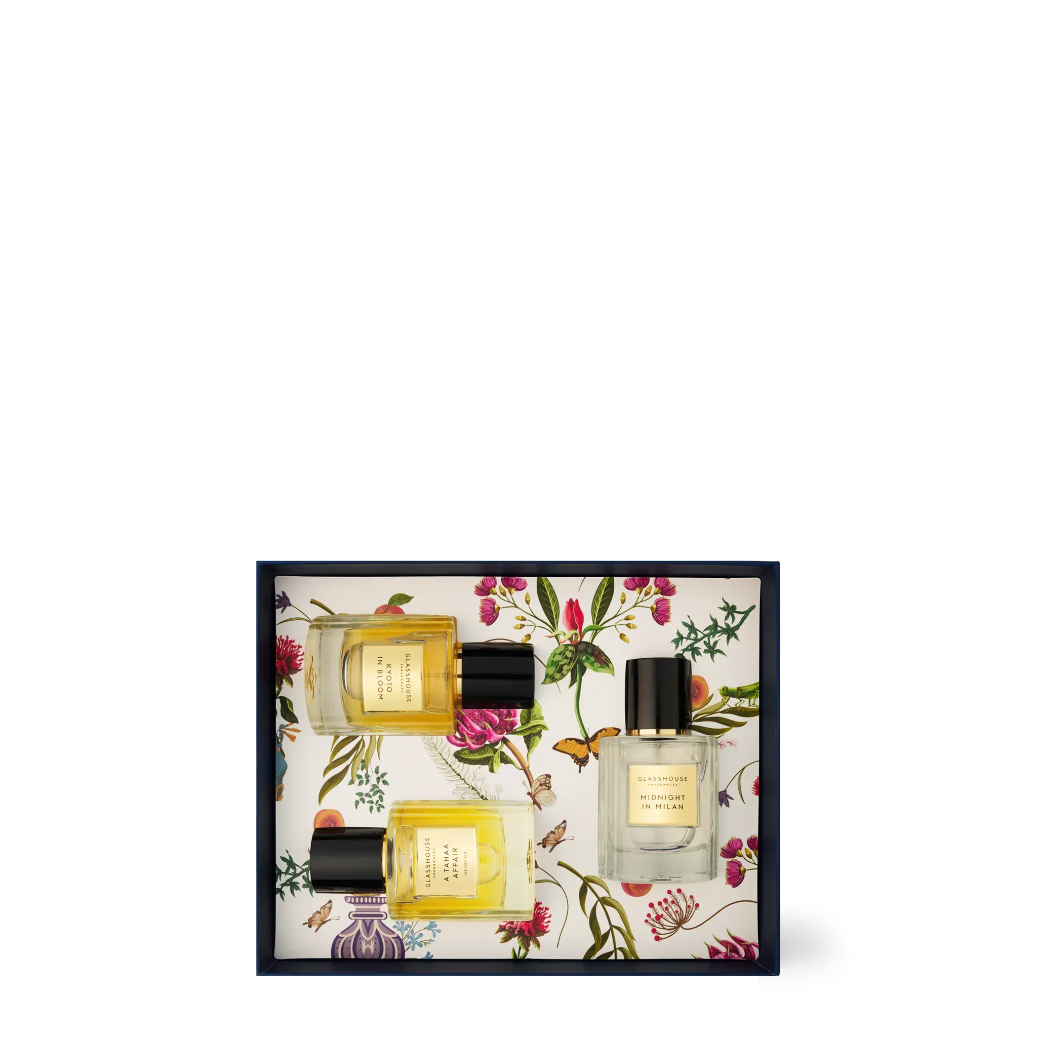 Experience the best of Glasshouse Fragrances with this limited edition Gift Set. Each scent has been created with its own distinctive character to ignite your senses with the transportive power of fragrance.
