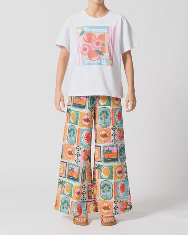 Add a splash of colour to your wardrobe with the Lison tee in Spicy Summer. Featuring a bold tropical fruit print and pastel stripes, it’s a vibrant mix of fun and freshness. Pair with denim or a flowy skirt for instant mood-boosting energy.