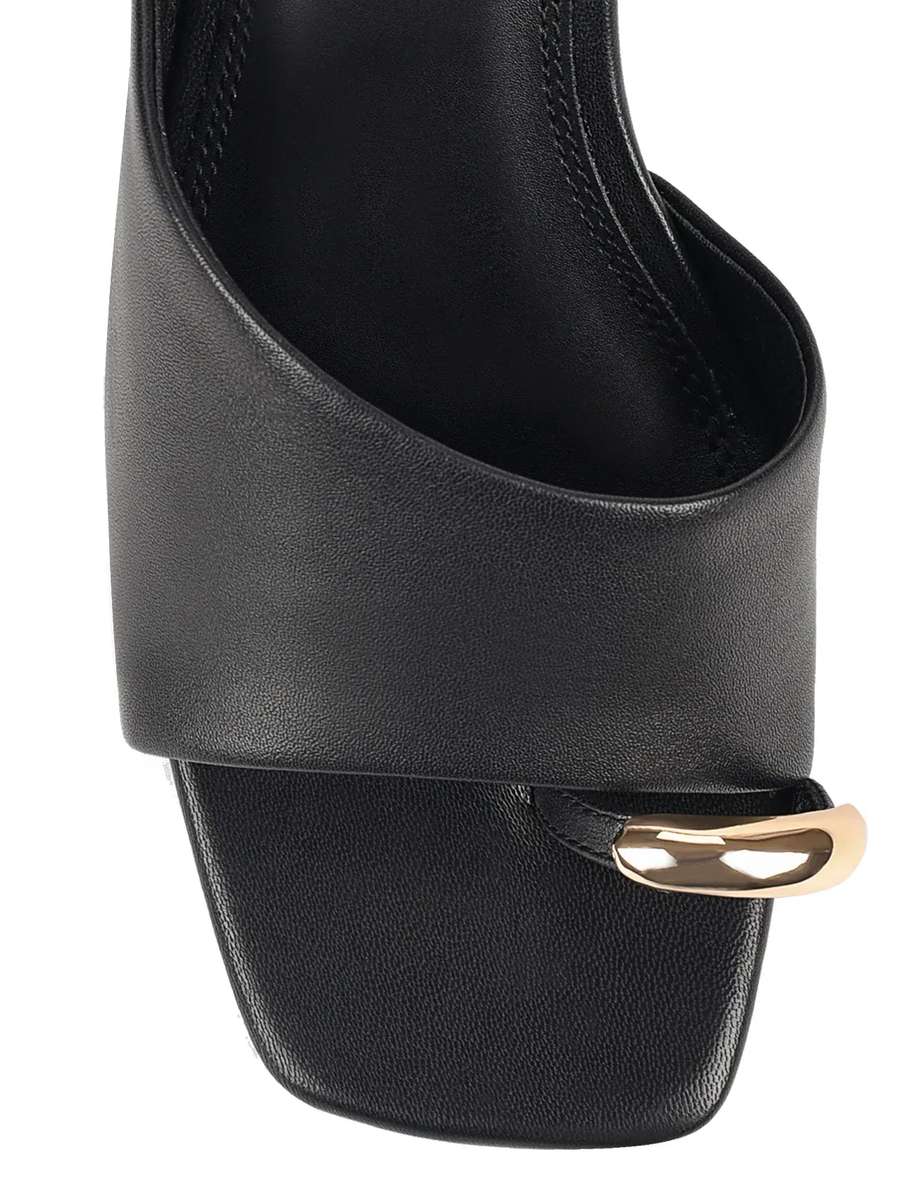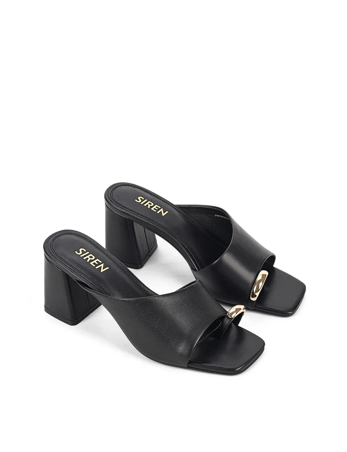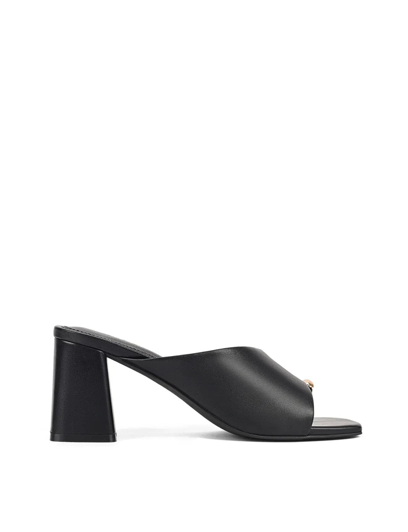 Sculptural and grounded, Stanton delivers texture and attitude in equal measure. Featuring a bold block heel, wide-cut upper and metallic toe ring detail, this mule is all about elevated ease. Pair it with neutrals or layered tailoring for a look that feels confidently refined.