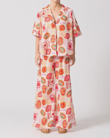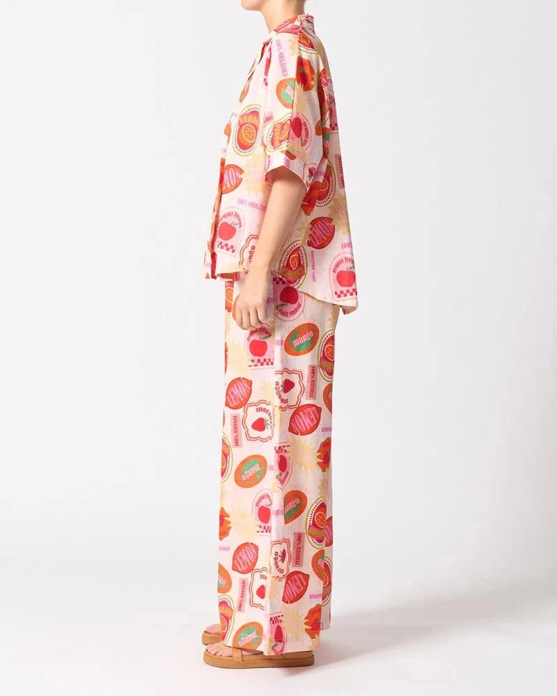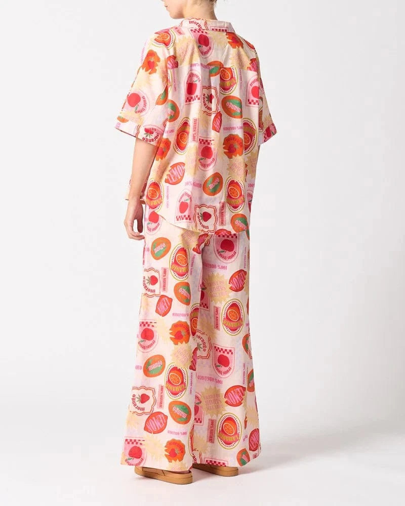 Make a statement in the Tropez Shirt, a playful yet polished two-piece featuring our vibrant Frutas Fescas print. The short-sleeve shirt has a relaxed, boxy fit with a button-down front and soft collar, perfectly paired with high-waisted shorts finished with a comfortable elastic waistband. Crafted from breathable cotton, this co-ord is ideal for sunny days, travel, and lounging in style.