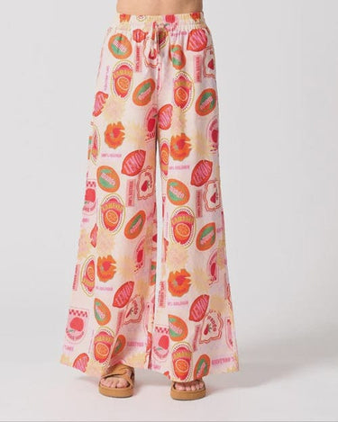 A fresh take on resort wear, the Vermont Pant in our playful Frutas Frescas print is all about effortless ease. Featuring a flattering wide-leg silhouette, soft elastic waistband, and lightweight feel, these pants are made for sunshine days. Style them with the matching shirt or a relaxed white tee for a cool, coordinated look.